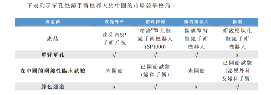 由于直觉外科公司的第四代达芬奇Xi系统、第三代达芬奇Si系统是仅有的获得国家药监局批准的产品,因此,若MP1000实现商业化,有望在国内与直觉公司的达芬奇Si及Xi系统形成竞争。