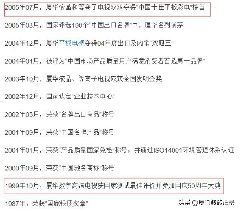 毫不夸张的说拿奖拿到手抽筋。厦华电子在中国彩电市场曾经是个炙手可热的品牌,销量一度进入市场前五;也曾经踏准了技术节点,成为第一个推出等离子电视的企业,也是第一个推出高清数字电视的企业。