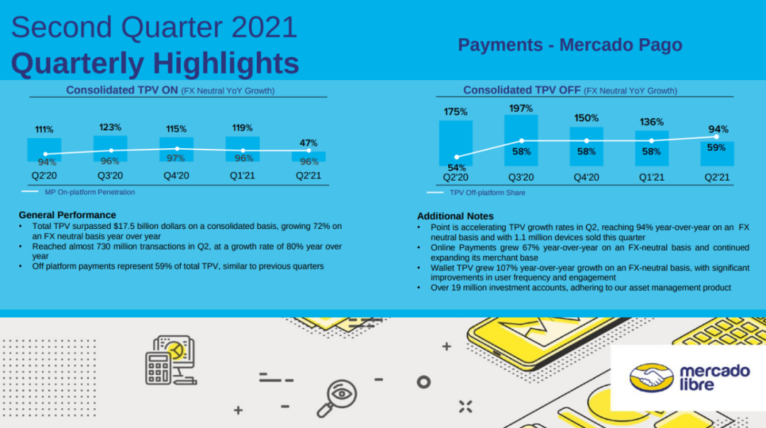 MercadoLibre牛市论文中最具吸引力的元素之一是其支付解决方案的大规模增长。它的MercadoPago产品与PayPal非常相似,并且越来越多地在MELI生态系统之外使用。