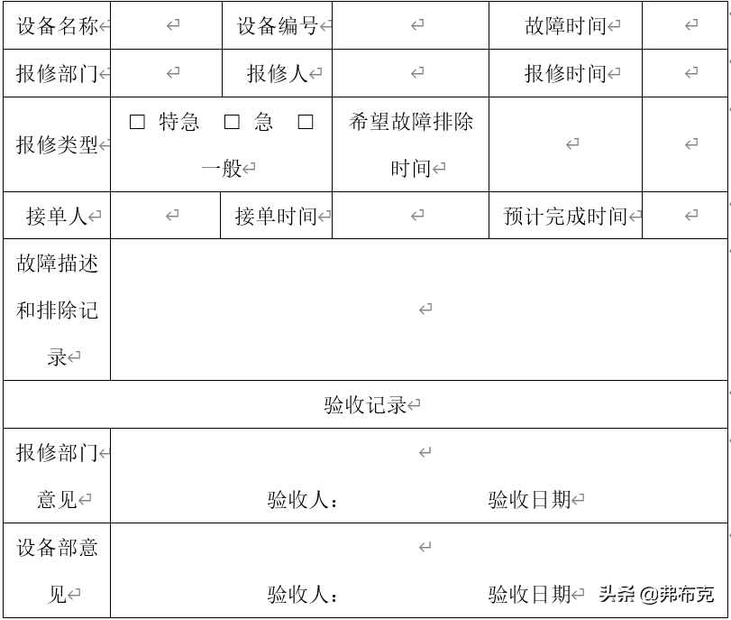 第10条验收不合格的自修设备不填写维修记录,需继续进行维修,直至验收合格。