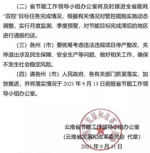日前,一份云南省节能工作领导小组办公室发布的《关于坚决做好能耗双控有关工作的通知》在全网疯传。该文件中要求加强重点行业管控,涉及钢铁行业、水泥行业、黄磷行业、绿色铝行业、工业硅行业和煤电行业。