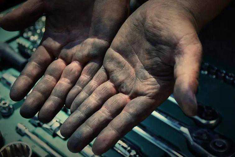 油污黑垢是每一个修理兵都无法避免的,远远看去,手上脸上都是油污,迷彩服上东一块西一块的油渍,仿佛已经和车辆武器融为一体。