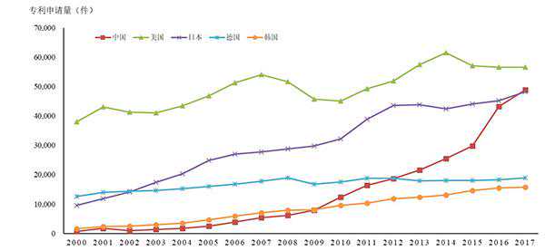 从创新产出情况来看,中国PCT(专利合作条约)专利申请量增长迅猛。根据WIPO(世界知识产权组织)的统计,2017年我国PCT专利申请量首次超过日本,成为PCT专利申请量全球占比第二高的国家,仅次于美国。根据WIPO预计,中国将在三年内超越美国。中国PCT专利年申请量从2000年的781件增长至2017年的48875件,18年间翻了60多倍,增长速度在排名前五的国家遥遥领先,体现了科技创新的较大潜力。随着中国经济快速转型,中国的企业不断创新,将新创意引入市场。在企业层面,华为以4024件专利申请数位居公司申请量排行榜全球第一,而中兴通讯紧随其后,以2965件专利申请数位居第二。(参见图3)