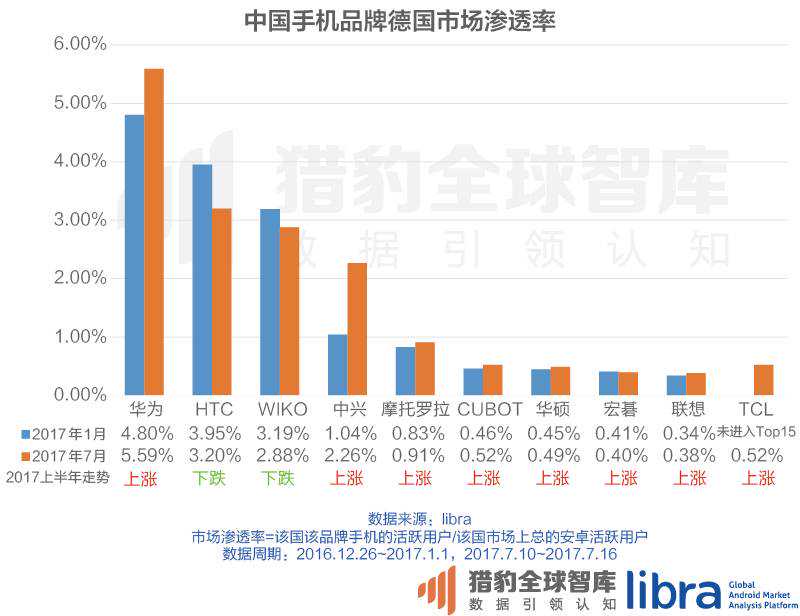 德国是华为的海外重点市场。目前华为是在德国最大的中资企业,华为也将欧洲研发总部建在德国慕尼黑。对比今年1月,华为在德国的市场渗透率上涨明显,已经逼近市场第二名索尼。