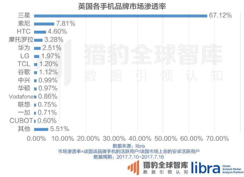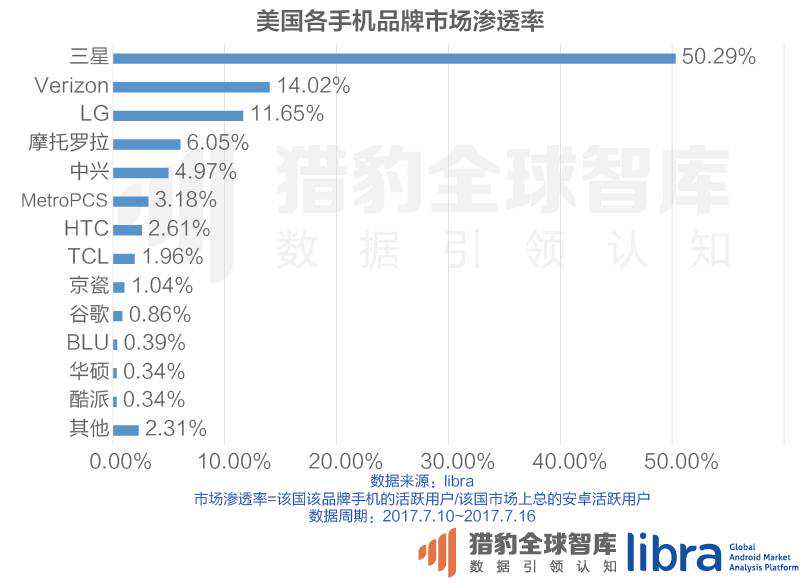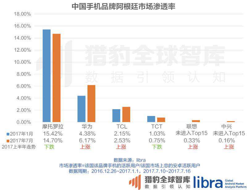 5.联想:根据libra数据,联想在43个主要国家和地区中的活跃渗透率都进入了前15名,而联想收购的摩托罗拉这一成绩为20个。摩托罗拉在很大程度上弥补了联想手机的空白地,在拉美地区占据前三的强势地位,在欧洲也有不错的市场占有率。印度作为除中国外最大的互联网人口国家、移动通信市场,是各大公司的必争之地,而凭借APP茄子快传在印度的疯狂传播,联想手机也获益良多。