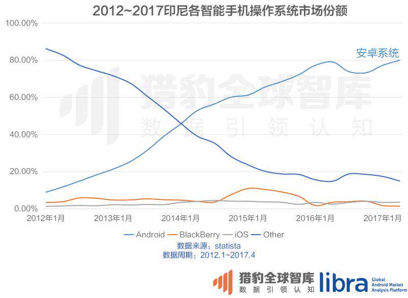 印尼市场与印度市场极度相似。目前印尼市场80%是安卓手机,印尼市场iOS的渗透率略高于印度市场。