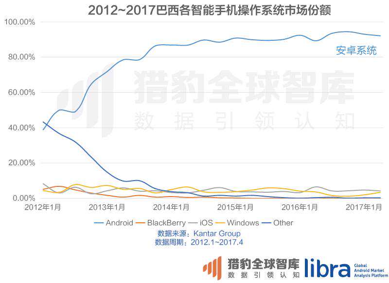 巴西相比于印度、印尼更早的完成了智能机对功能机的替代。巴西智能手机市场似乎也更加的极端,安卓机的市场占有率达到了90%以上。巴西的iPhone售价是全球最贵的,这或许是造成巴西智能手机市场几乎都被安卓占领的主要原因。