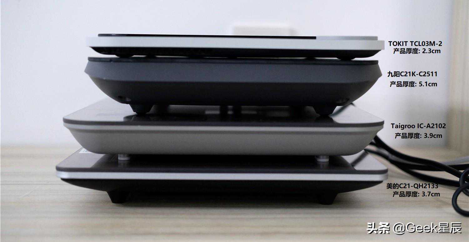 TOKITTCL03M-2、美的C21-QH2133、TaigrooIC-A2102以及九阳C21K-C2511外观如何?下面给出产品部分细节图,综合尺寸、厚度以及可移动性进行打分,该环节分值为30分。