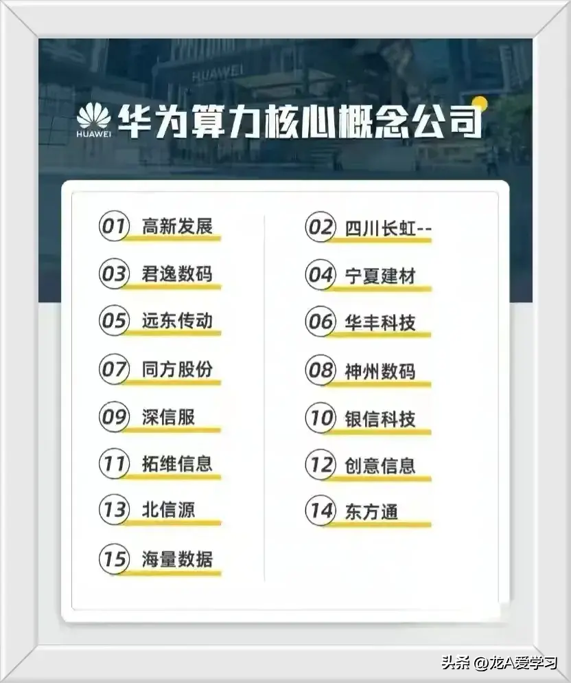 华为概念,今日主力资金流入详情