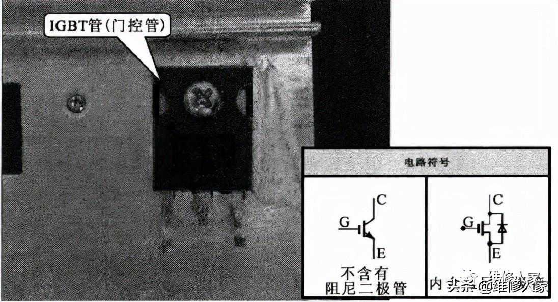 IGBT管(门控管)是一种高压、高速的大功率半导体器件。IGBT管(门控管)是电炉中最关键的器件,其价格也比较昂贵,下图所示为IGBT管(门控管)的实物外形及其电路符号。