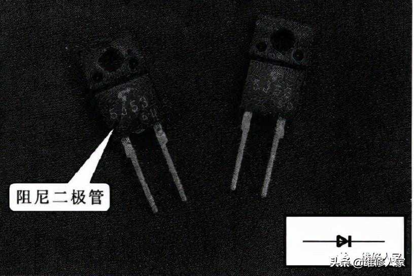 阻尼二极管主要是为了保护IGBT管(门控管)在高反压的情况下不被击穿。下图所示为阻尼二极管的实物外形与电路符号。