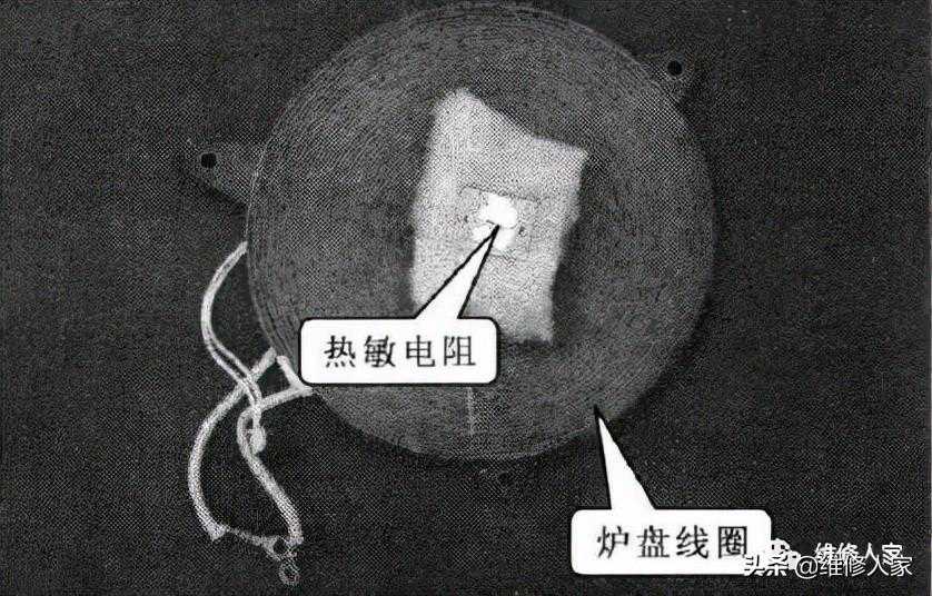 在炉盘线圈的中心部位设有热敏电阻用以检测锅具温度,如图所示。