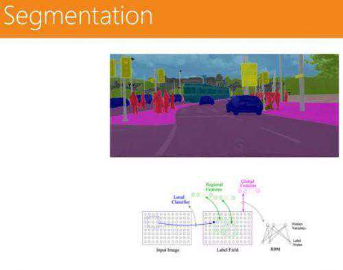 人行道是一个场景,道路是一个场景,在场景中对不同的物体进行分类,是一个很重要的问题。传统的方法是采用CRF(条件随机场),基本原理在于图像都是由像素点组成的,若两个像素点都比较像车,那就把二者连接起来,形成对车辆的识别。