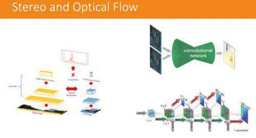 光流也可以利用深度学习的模型来做,把左右两图用同样的模型来提取特征,经过计算就能得出一个深度的信息。但是这个方式的计算量非常大。对感知有兴趣的同学可以学习一下OPENCV以及基本的卷积网络识别例子,比如基于LENET的数字识别。