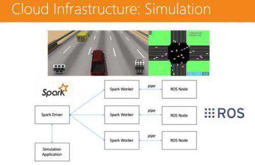 首先是模拟计算。比如你新开发了一个程序,想要试试新的算法是不是好用,但是不可能每次都实车验证,因为成本高,而且覆盖的场景很少。所以一般采用的是模拟计算的方式:游戏平台和真实数据回放,更多是采用后者的形式。这里有一个问题,单机回放必须要回放实际的数据,比如谷歌无人车累计有8年的数据,如果单机计算需要很长时间,这显然不可取。所以这里采用了SparkDriver的系统,可以并行处理,把作业分发下去,通过Linuxpipe把每一个ROSNode节点打出来做一个回放,数据再回收到SparkDriver里去。只要给的节点够多,几十分钟就可以验证一套算法。