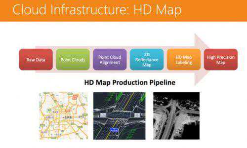 第二个是高精地图的制作。这是个很复杂的工作,首先是裸数据,然后从裸数据得出一个点云的数据,点云和点云之间要做一个对齐,对齐之后要把反射率的数据填到里面,然后再加一些语义的信息等。用分布式平台来做高精地图的生产,最大的计算量部分集中在点云的生产和对齐上,用异构计算可以很好地完成这些作业。
