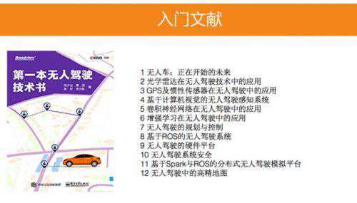 在有了入门的知识并完成入门小作业后,大家会对整个无人驾驶的技术框架比较了解,这个时候就需要更深入的了解每个技术点。为了让读者更深入了解无人驾驶技术,我们花了很多时间梳理了当前无人驾驶使用到的技术点,在美国出版了《CreatingAutonomousVehicleSystems》,这本书被IEEE推荐为无人驾驶教材,已经被美国多个大学的图书馆收录。这本书与《第一本无人驾驶技术书》最大的不同是每个技术点我们会比较深入的去解释,还会提供许多论文的引用,当读者对某个技术点特别感兴趣时,有足够的文献让读者去深入研究。