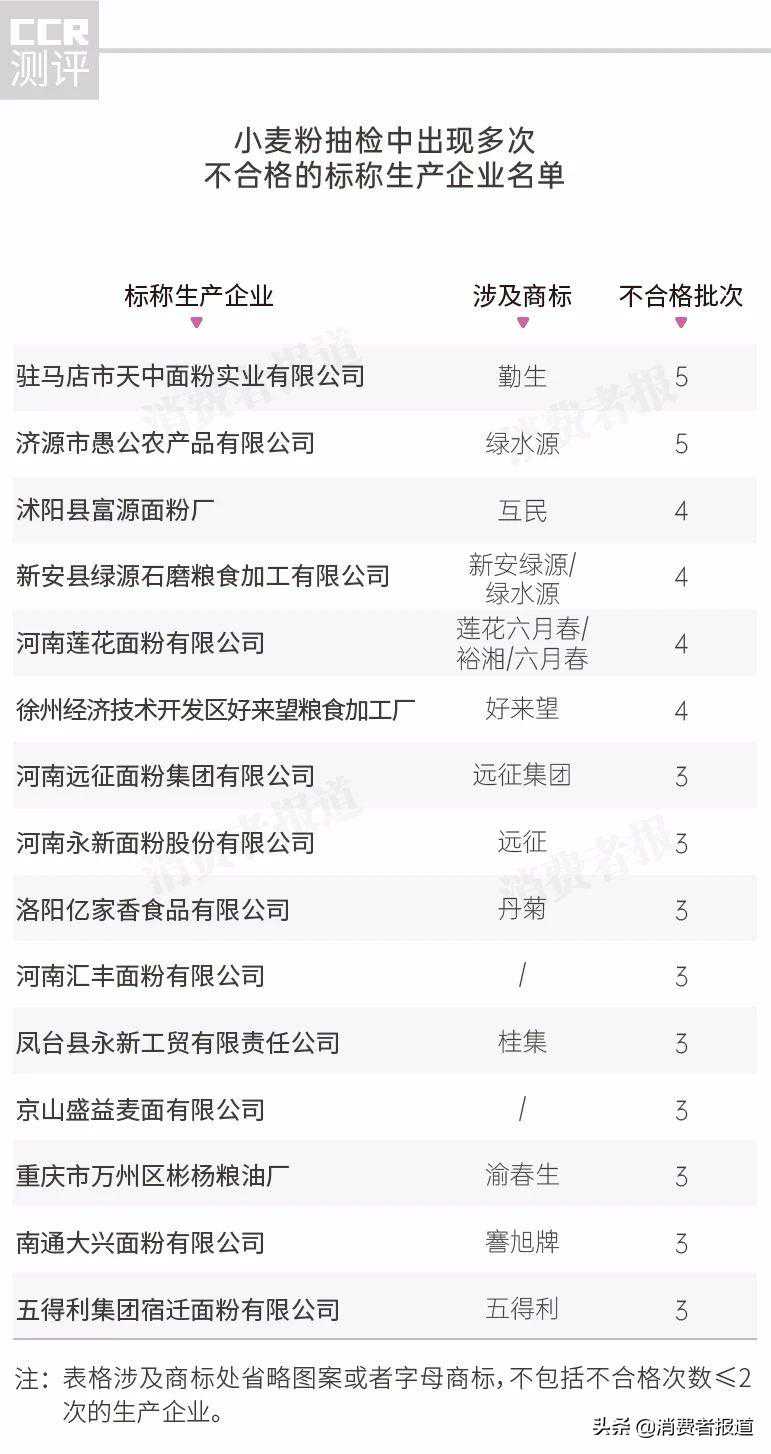 由此可见,多次出现不合格的生产企业仍占极少数。其中“勤生”“绿水源”等品牌小麦粉上榜次数最多。