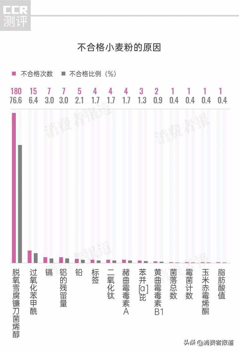 结果显示,近5年监管部门共检出235批次不合格小麦粉,不合格原因主要是真菌毒素超标,其次是检出“面粉增白剂”。