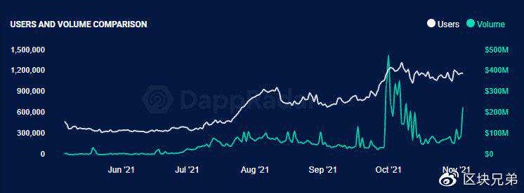 从2021年7月以来,链游数据迅猛增长,玩家从4月初的8万人增长到10月的133万人,月均增幅270%多;日交易量从4月初的50万美元左右增长到10月初5.44亿美元左右的水平,平均每个月增长超181倍,让人们看到了GameFi领域未来无穷的潜力。
