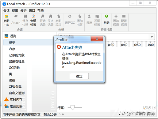 删掉后,我们尝试对目标JVM进行attach,便会提示无法attach: