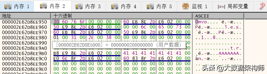 定位到地址0x2e61a1b67d0: