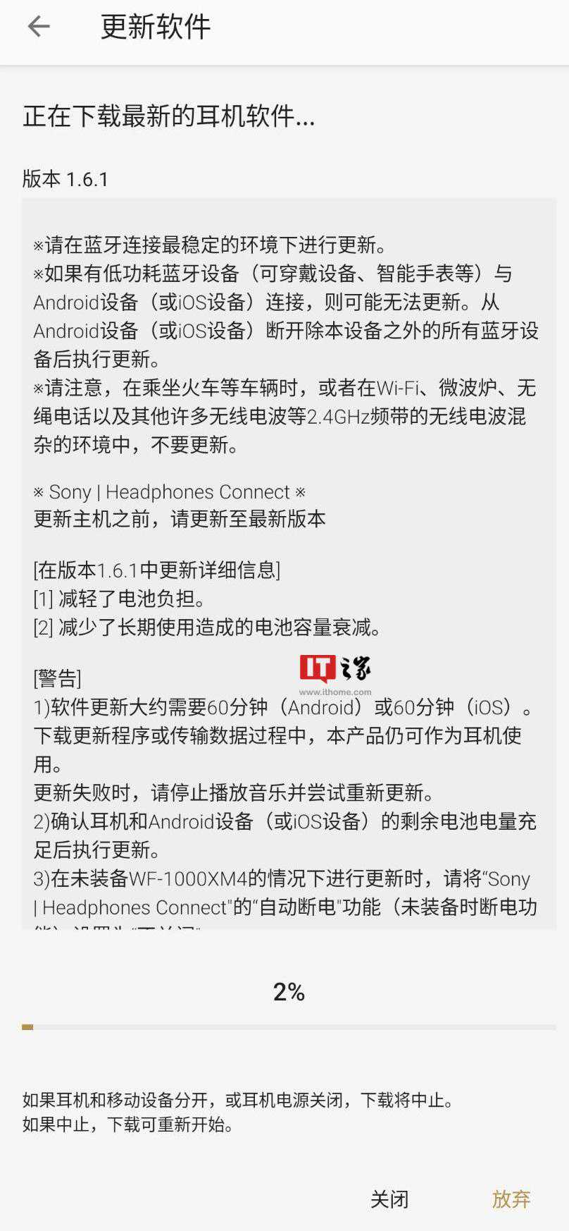 大家可以将耳机充满电并保持与智能手机的连接,然后打开SonyHeadphonesConnectApp进行固件更新。