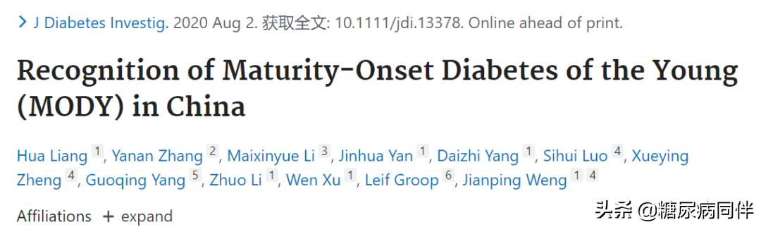 由翁建平教授带领的研究团队,8月2日在线发表于JDiabetesInvestig杂志的题为RecognitionofMaturity-OnsetDiabetesoftheYoung(MODY)inChina的研究结果可谓代表我国特殊类型糖尿病最好的研究。现将讲究结果简述如下: