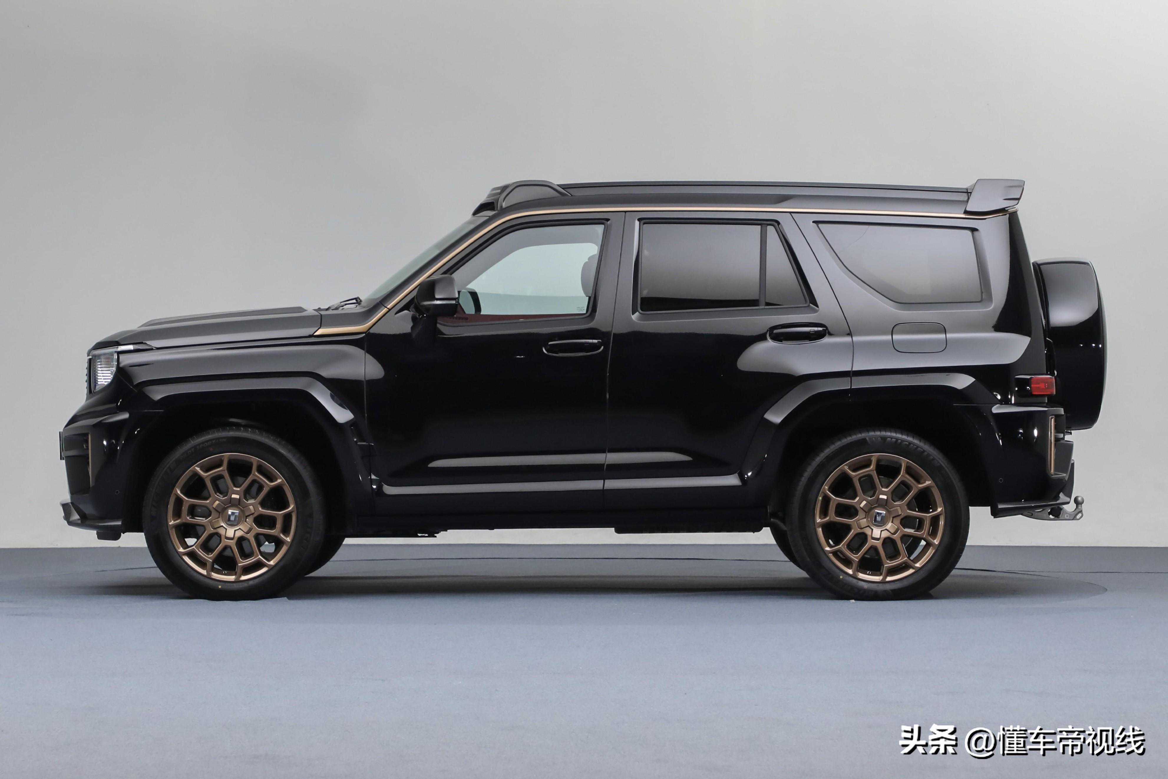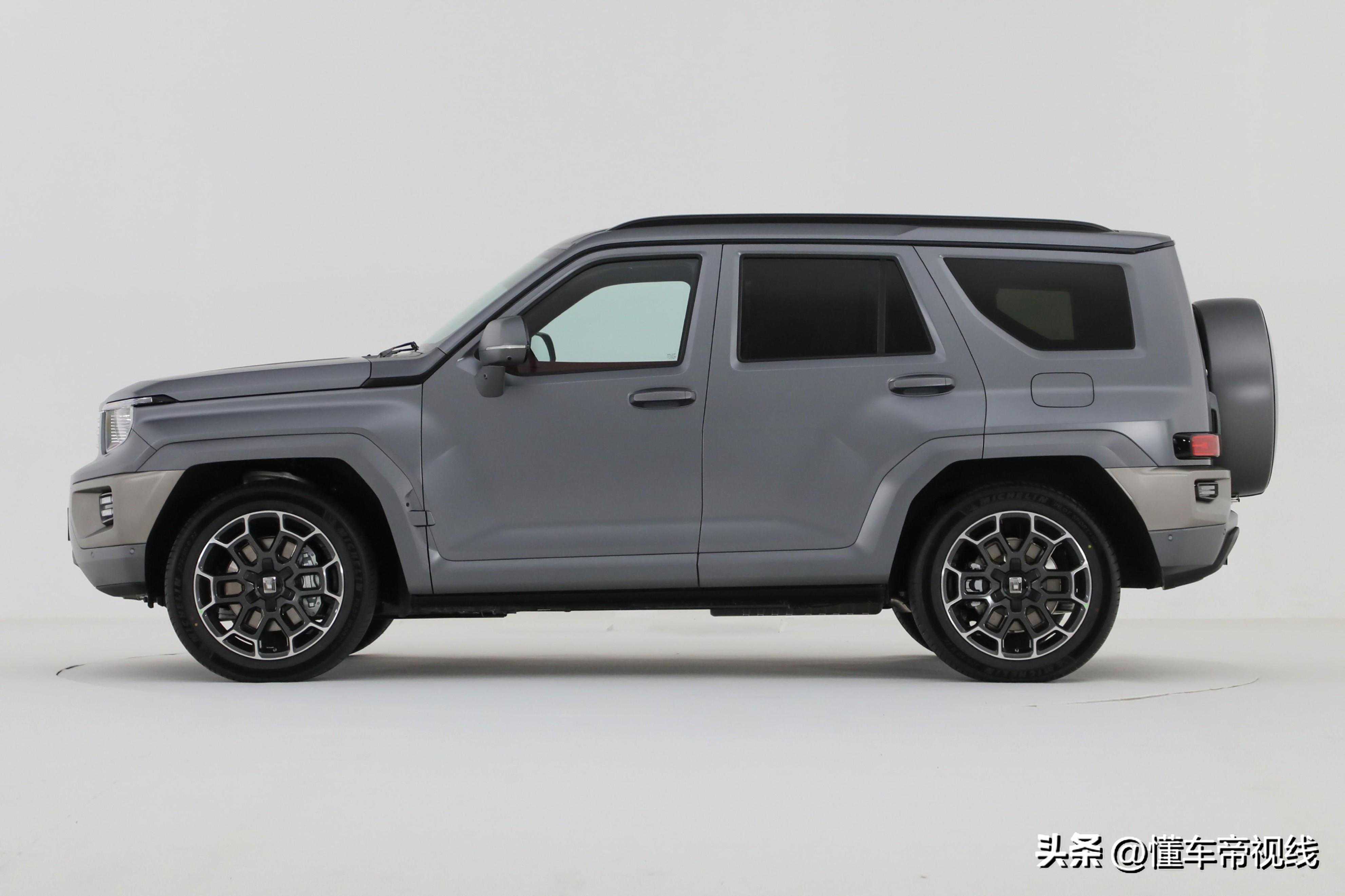 从侧面看,坦克700Hi4-T呈现出较为明显的硬派风格,前后包围呈现出宽体的视觉效果,三扇侧窗则均采用不规则造型设计,还配备电动侧踏。极致版和极境版配备20英寸轮辋,提供22英寸轮辋选装,长宽高分别为5090/2061/1952毫米,轴距为3000毫米。