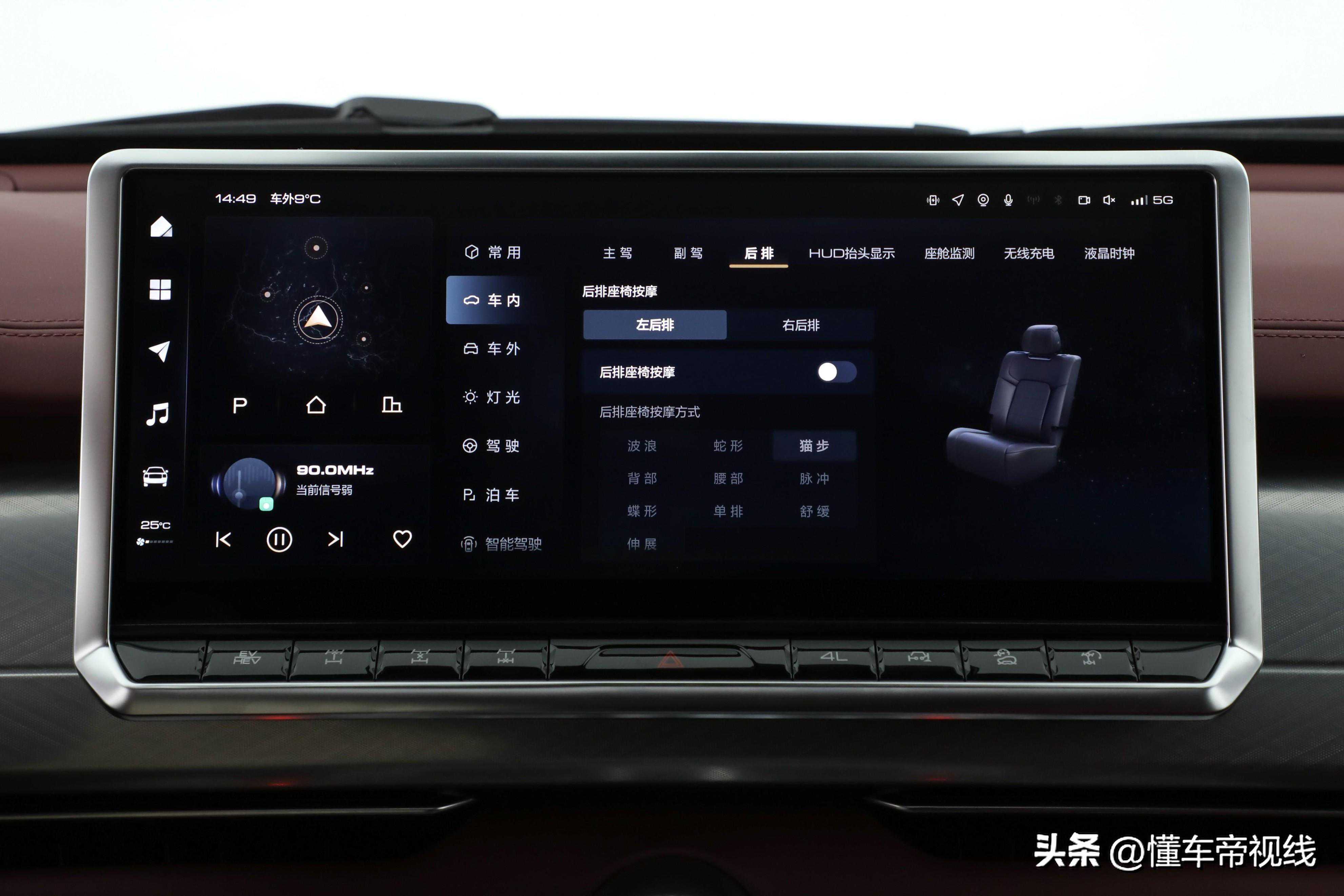 配置方面,坦克700Hi4-T全车座椅均支持加热、通风、按摩功能,其中座椅加热提供9档可调,通风和按摩则提供3档可调。另外,前排座椅还标配了4向电动腰托和2向电动腿托。后排座椅提供电动调节,可以支持141度无级电动调节。
