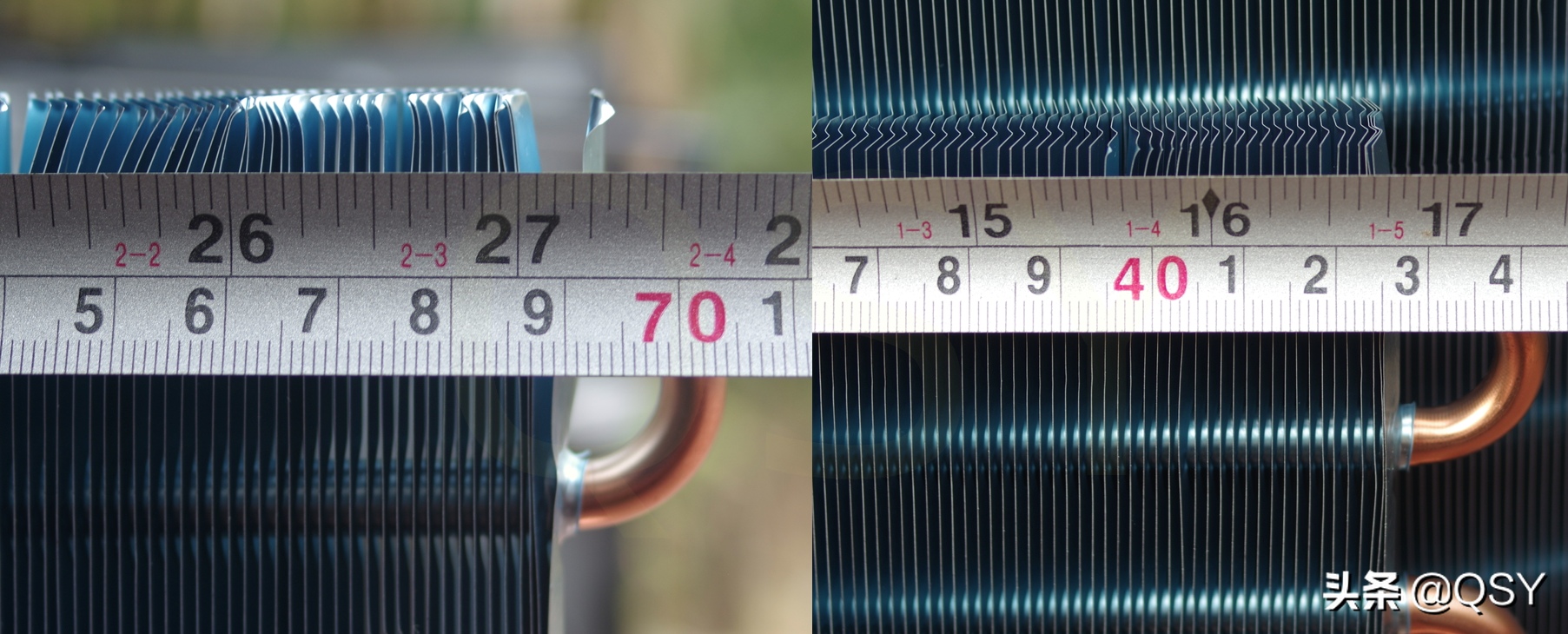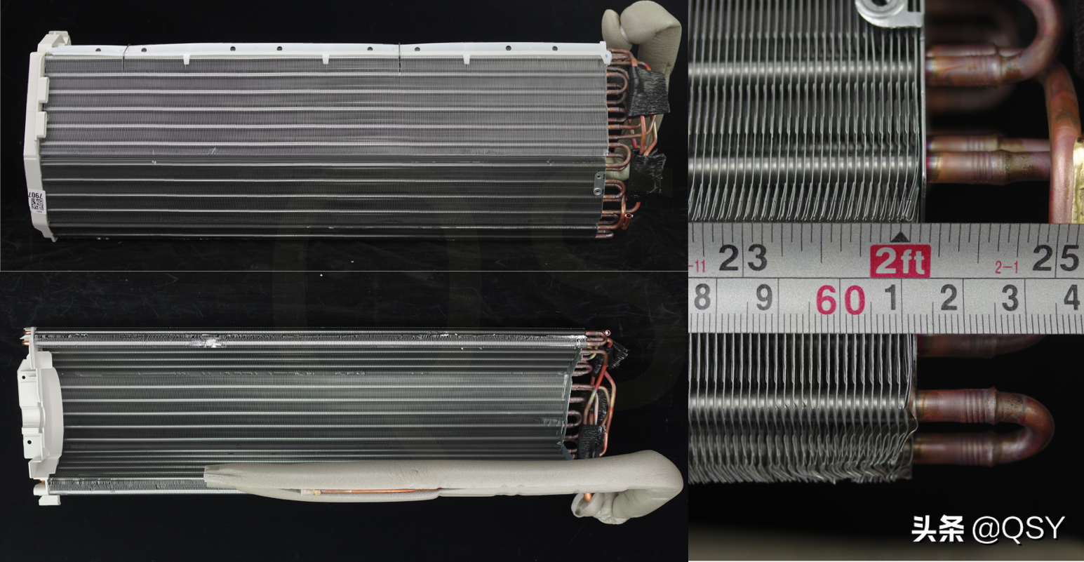 拆卸掉背面的防护网之后,可以明显的看到多出来的半排铜管。