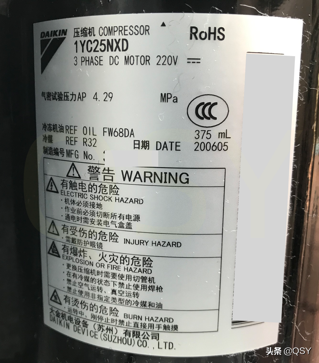 因为三菱电机和松下都是9.2cc排量压缩机,大金能与其混用,我推断大金1YC25也应当是9.2cc排量,性能水准与三菱电机、松下相当。