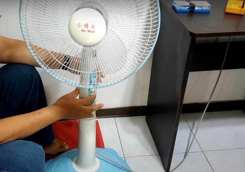 接上电源,按下开关键,风扇已经开始转动了,并且运转正常,修理完毕。