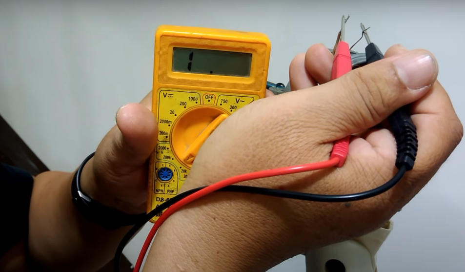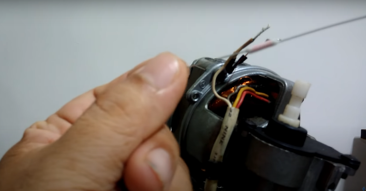 电机清洁后,可以看到有两根引线,中间连着保险丝,用万用表接在保险丝两端,电阻无穷大,显然这个保险丝烧掉了,这样问题就好解决了,去电子城买了一个才花2块钱。