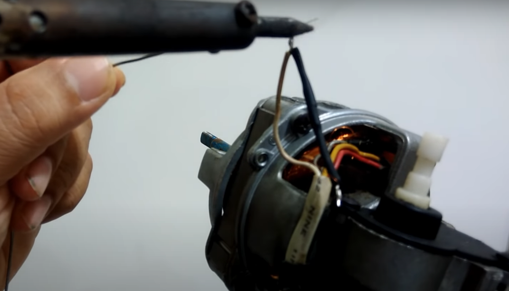然后用绝缘电工胶带缠好,做好绝缘,塞进电机后壳。