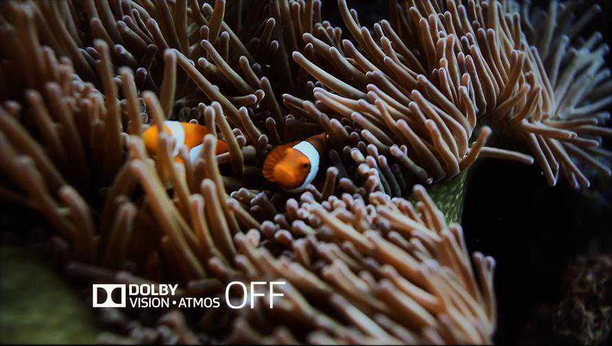 首先是HDR10和DolbyVision,播放相应的素材时,电视可以很好地识别并进行解码,无论是HDR10、还是DolbyVision,都为画面提供了一个更高的动态范围,呈现出了更多的细节,画面细节的表现更具出色。