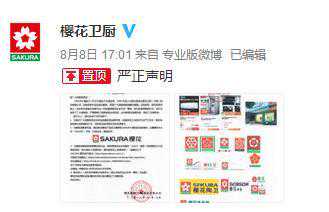 8月8日下午,SAKURA樱花在其官方微博“樱花卫厨”上发布了一则严正声明:“SAKURA樱花于1978年诞生于中国台湾,1994年进入中国大陆成立樱花卫厨(中国)股份有限公司,因良好的产品品质与服务,受到广大消费者的信赖与厚爱。近段时间,我司发现市面上(含拼多多等部分电商平台)存在假冒我司企业字号‘樱花’进行经营销售的行为,该行为误导了广大消费者,严重侵害了消费者的合法权益,企业商誉及品牌权益,扰乱了市场秩序。鉴于以上,我司在此严正声明如下。”在微博正文,SAKURA樱花刊登了严正声明的文件。声明称,目前正与相关平台严正交涉,要求其即刻停止假冒侵权行为,并将依法追究侵权方的法律责任。在该声明中,SAKURA樱花还特别提醒消费者识别正品樱花注册商标,“五瓣樱花与大写‘SAKURA’字母,红底白花,绿底白字。”声明还附上部分假冒樱花品牌:樱花空调、樱花冰箱、樱花洗衣机、苏州樱花及广州樱花等。