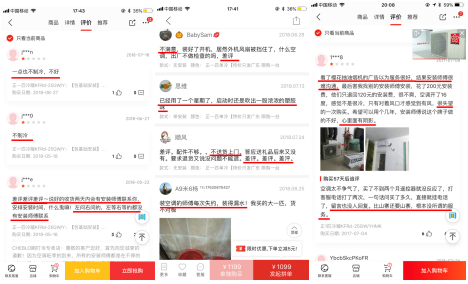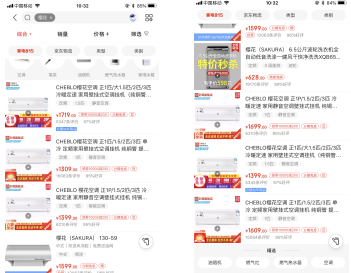 (拼多多平台上“樱花空调”专营店,页面上的差评比比皆是)