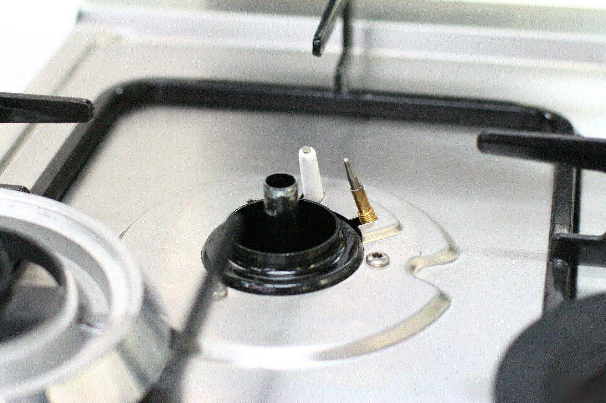 「还有一种常见情况也会导致点火速度慢,就是火盖脏了,上面的小孔被堵住了。用牙签等工具把小孔捅开,就能解决问题。」