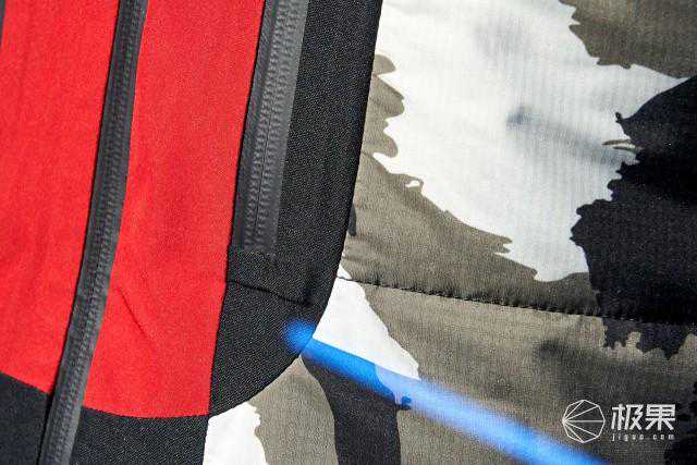 以这次的登峰系列羽绒服为例,它不仅达到了3厘米13针,而且还采用了一种防水压胶工艺。