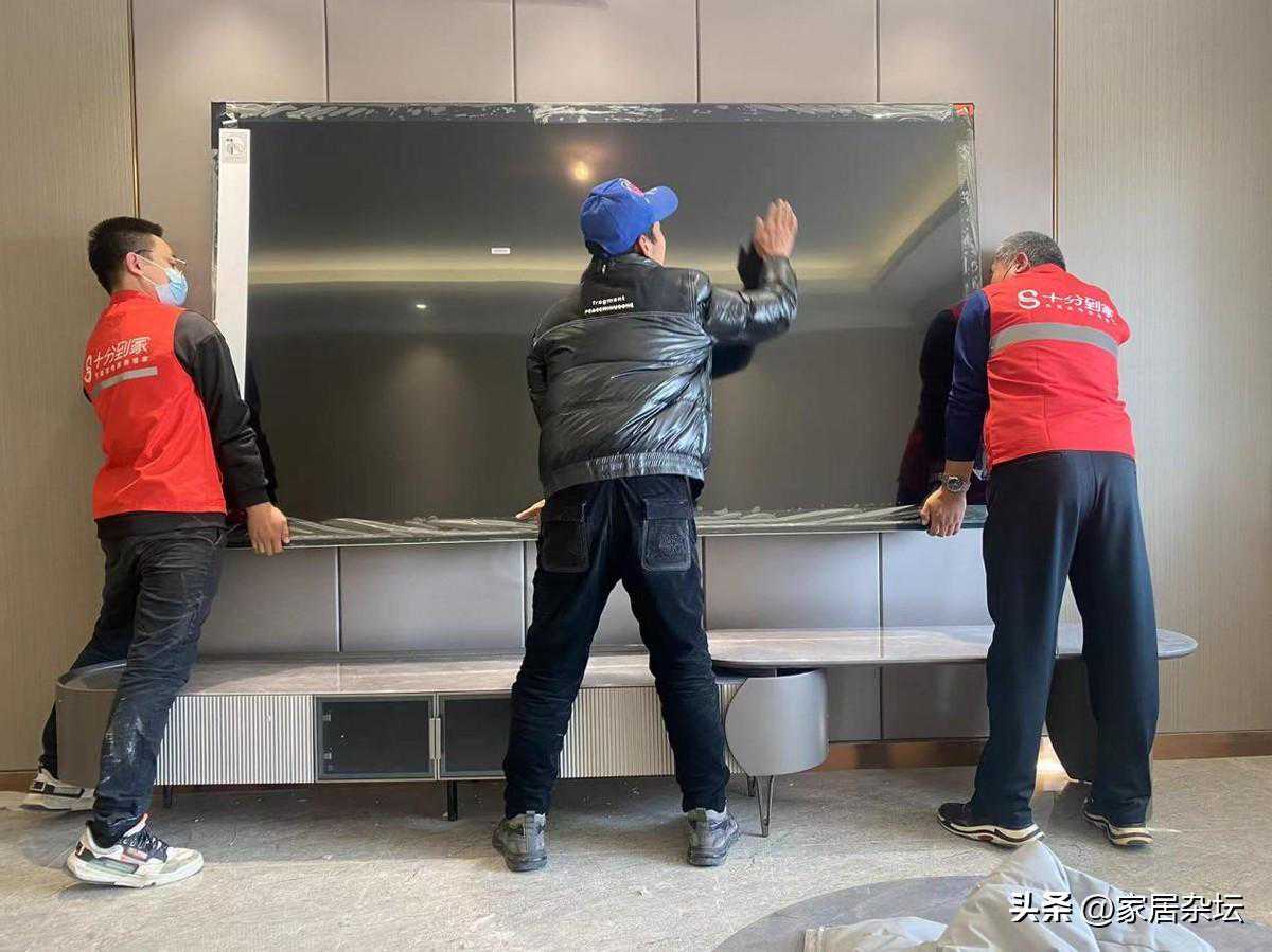 98吋电视,给我的第一感觉就是大,大的气派。来安装的共有4个师傅,全程不用自己操心。