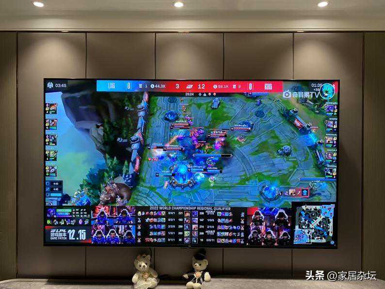 另外,98英寸巨幕带来的巨大好处,就是会有一种身临其境的沉浸感!例如我在看《英雄联盟》职业比赛直播的时候,视线基本是没有没有边界,填满整个目光,让注意力“无从分散”,从而“不得不”沉浸!怎么说呢,就是有种我在现场看选手们比赛的感觉,氛围感真的直接拉满了: