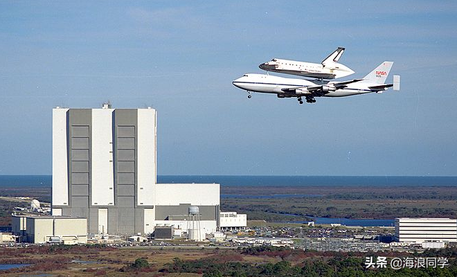 1986年,N905NA运送哥伦比亚号,飞过肯尼迪航天中心的垂直装配间,此时的N905NA已经没有美国航空的涂装。