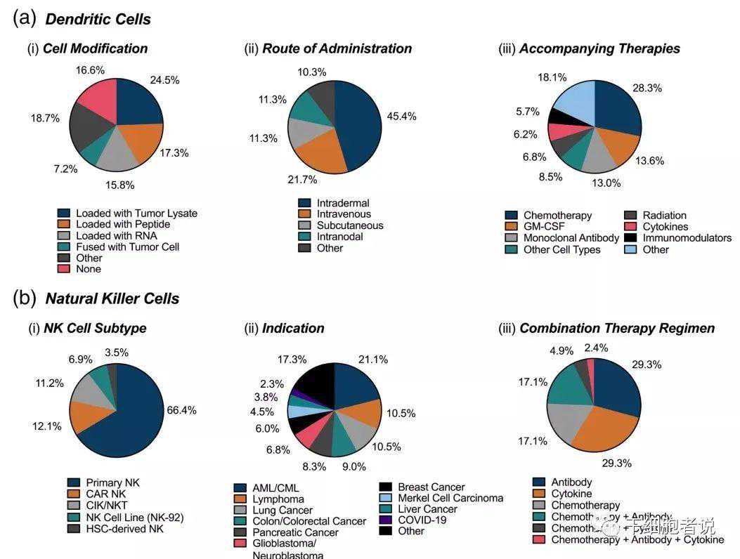 a)136项DC细胞临床试验;b)116项NK细胞临床试验。