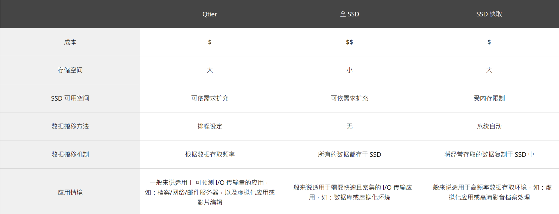 QNAP独有的Qtier技术可以灵活变动,其优势明显: