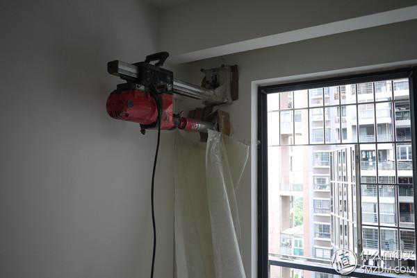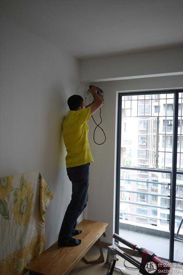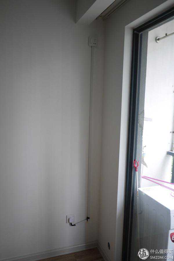 ▼量好位置,确认插座安装位置,这个位置既可以被窗帘挡住,又不至于太靠边影响用电锤打孔: