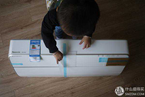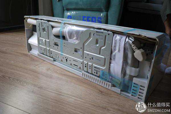 ▼内机开箱,XE怡臻系列采用纯白的外壳,边缘用淡金色的装饰条点缀,由于机身超级厚,安装以后的造型很奇特,据说很有日式风格。