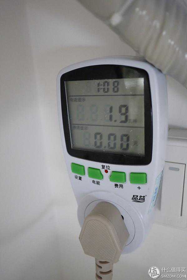 ▼首先,看下待机功耗,插入空调插座后,室内机内部会有动静,大概半分钟后动静消失。等待5分钟后,查看数值1.9W,和说明书上标称的待机功耗1.2W还是有较大差距的。