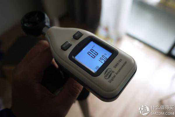 ▼接着看下天花板气流的情况,架高测试仪,和空调高度基本一致,在具体空调2米距离测得数据:风速1.2m/s,温度19.5摄氏度。