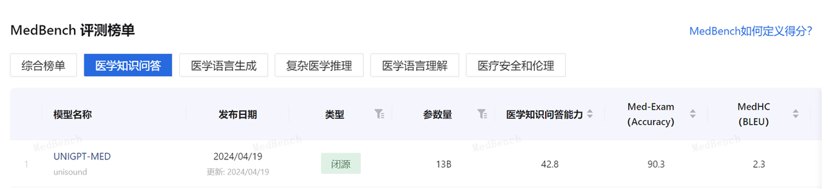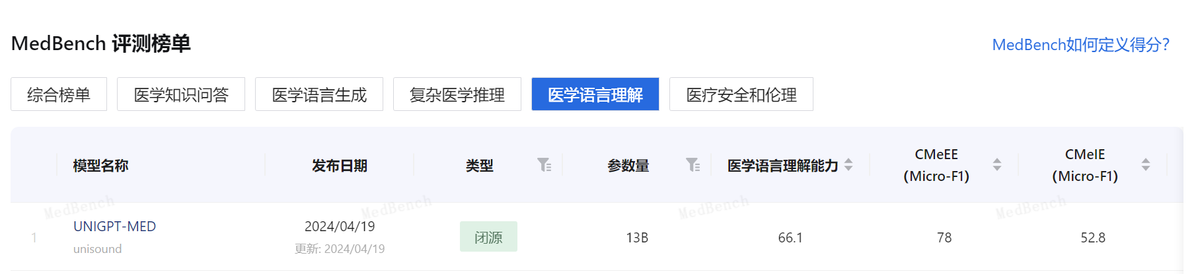医学语言理解评测得分